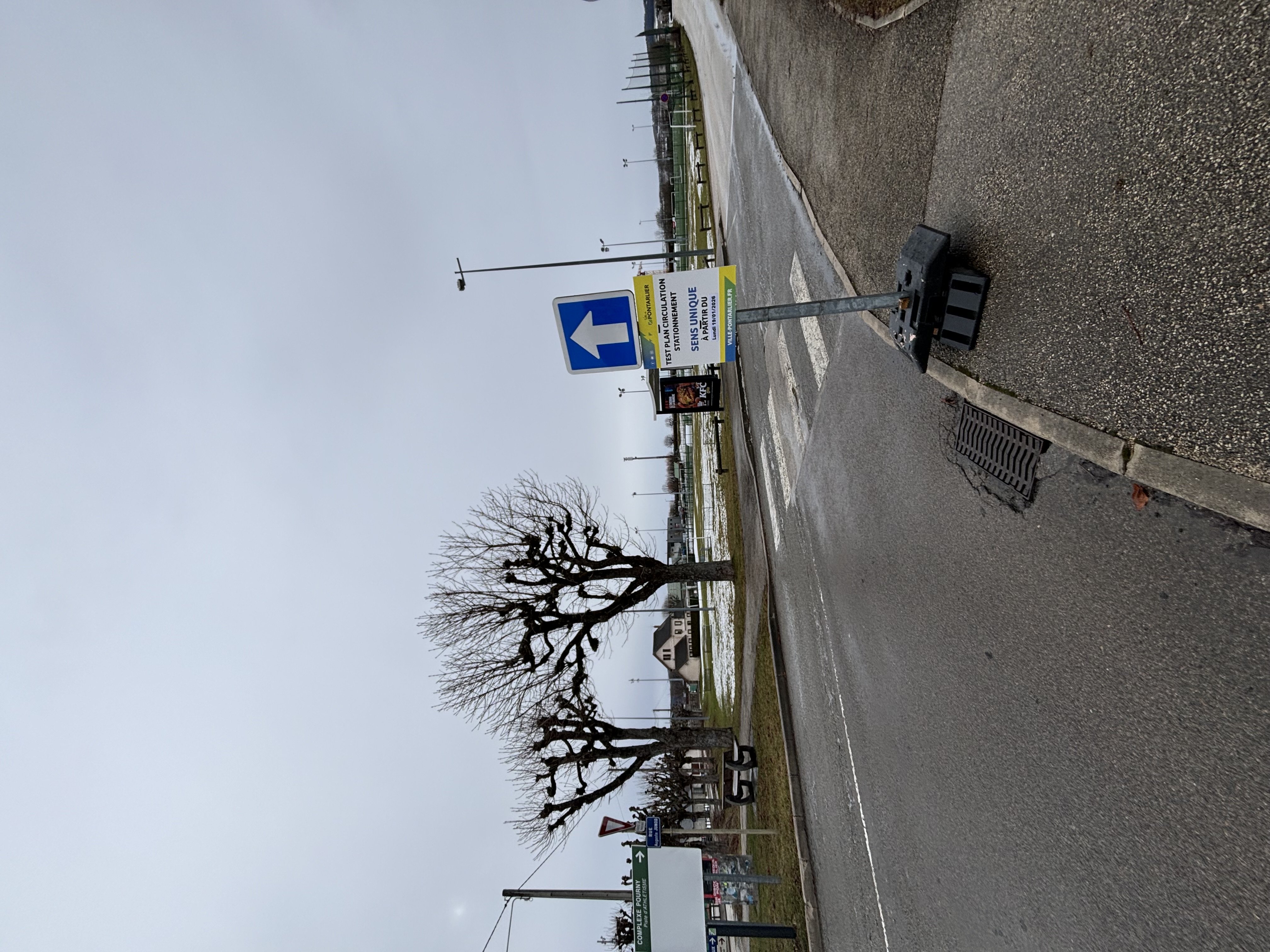 > Mise en place d'un sens unique dans le sens descendant, depuis la Rue du stade en direction de l'espace René Pourny.